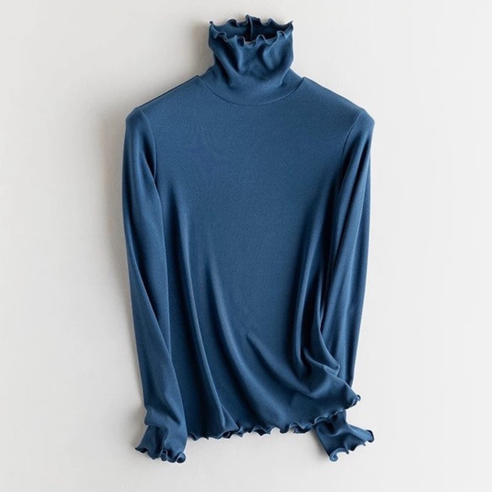 ◇洗濯可【2種類ネック 肌に優しい シルク タートルネック】ブルー 保湿、保温抜群 T-00086