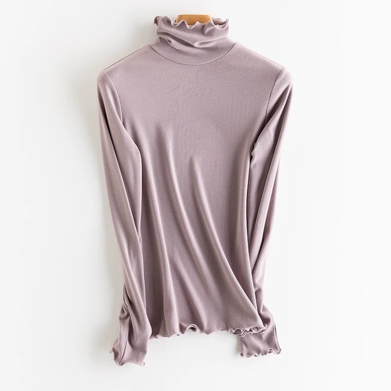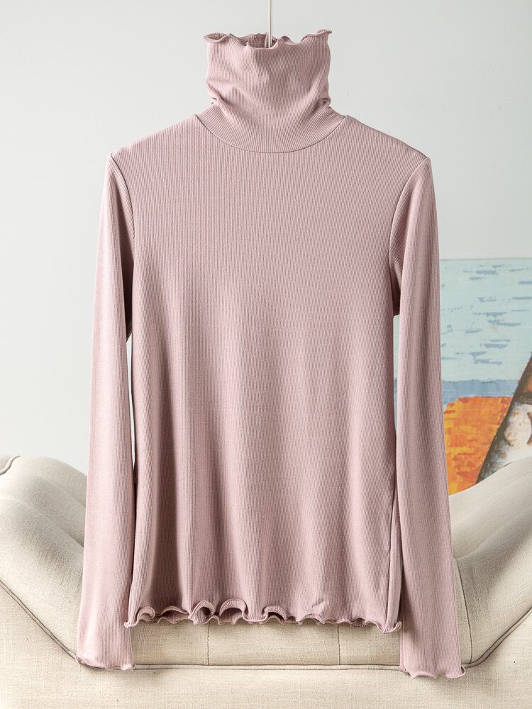 裏地にベルベット素材を使用しシルクの柔らかさと保温性と保湿性を兼ね備えた万能タートルネック